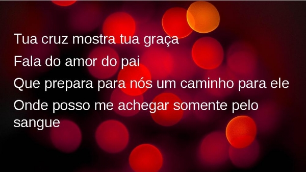 - Tua cruz mostra tua graçaFala do amor do paiQue prepara para nós um caminho para eleOnde posso me achegar somente pelo sangue