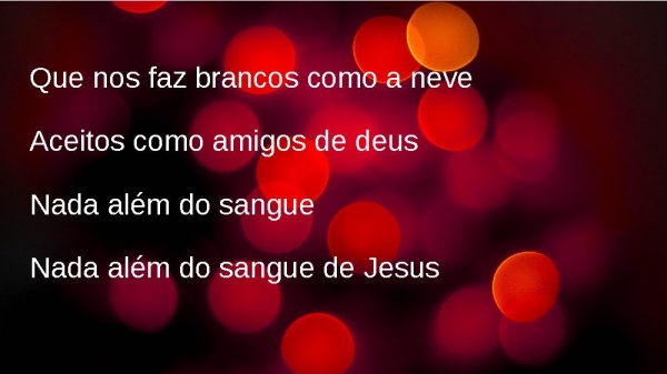 - Que nos faz brancos como a neveAceitos como amigos de deusNada além do sangueNada além do sangue de Jesus