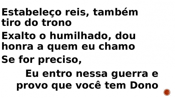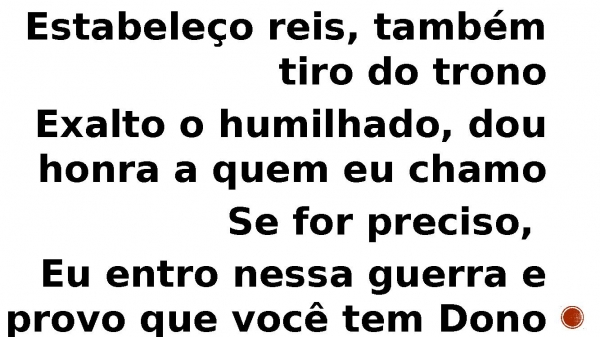 - Estabeleço reis, também tiro do tronoExalto o humilhado, dou honra a quem eu chamoSe for preciso, Eu entro nessa guerra e provo que você tem Dono