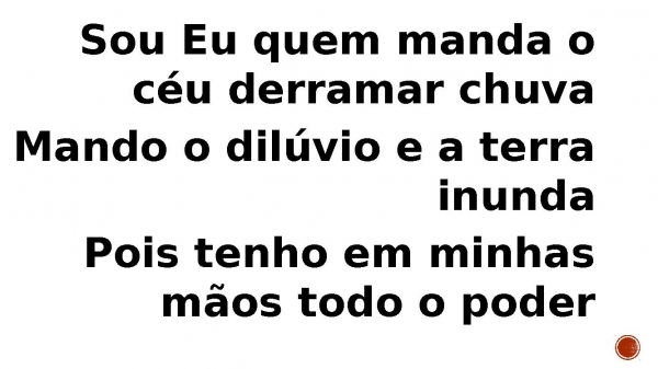 - Sou Eu quem manda o céu derramar chuvaMando o dilúvio e a terra inundaPois tenho em minhas mãos todo o poder