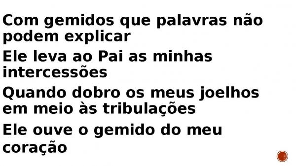 - Com gemidos que palavras não podem explicar Ele leva ao Pai as minhas intercessões Quando dobro os meus joelhos em meio às tribulações Ele ouve o gemido do meu coração