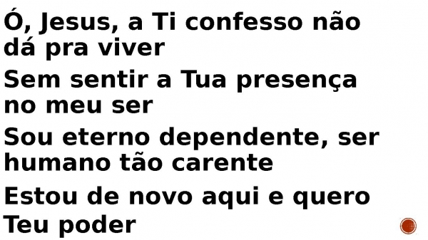 - Ó, Jesus, a Ti confesso, não dá pra viver Sem sentir a Tua presença no meu ser Sou eterno dependente, ser humano tão carente Estou de novo aqui e quero Teu poder