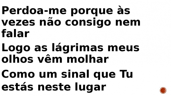 - Perdoa-me porque às vezes não consigo nem falar Logo as lágrimas meus olhos vêm molhar Como um sinal que Tu estás neste lugar