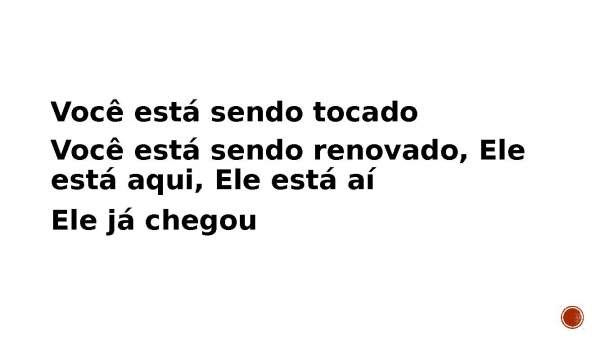 - Você está sendo tocado Você está sendo renovado, Ele está aqui, Ele está aí Ele já chegou