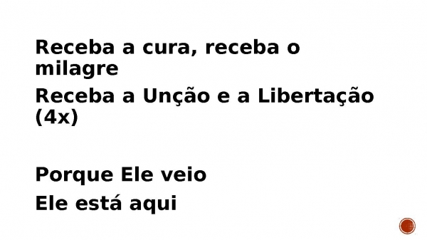 - Receba a cura, receba o milagre Receba a Unção e a Libertação (4x) Porque Ele veio Ele está aqui