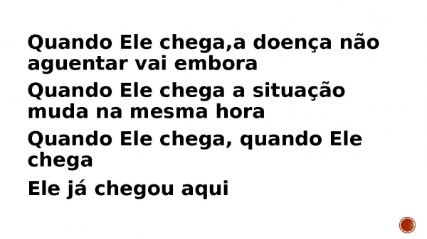 - Quando Ele chega,a doença não aguentar vai embora Quando Ele chega a situação muda na mesma hora Quando Ele chega, quando Ele chega Ele já chegou aqui