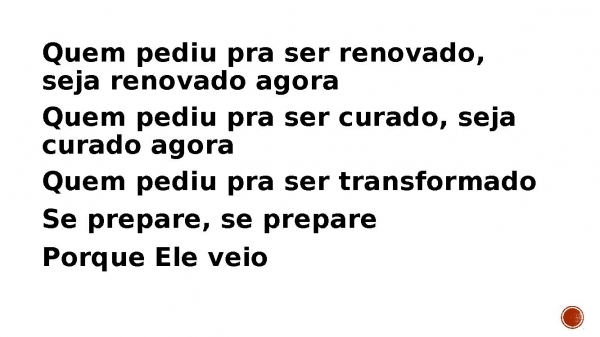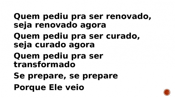 - Quem pediu pra ser renovado, seja renovado agora Quem pediu pra ser curado, seja curado agora Quem pediu pra ser transformado Se prepare, se preparePorque Ele veio