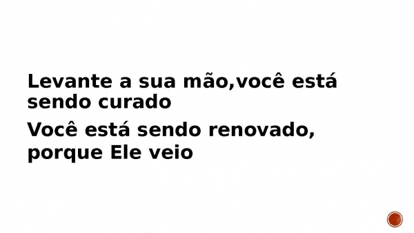 - Levante a sua mão,você está sendo curado Você está sendo renovado, porque Ele veio
