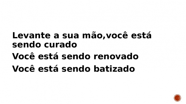 - Levante a sua mão,você está sendo curado Você está sendo renovado Você está sendo batizado