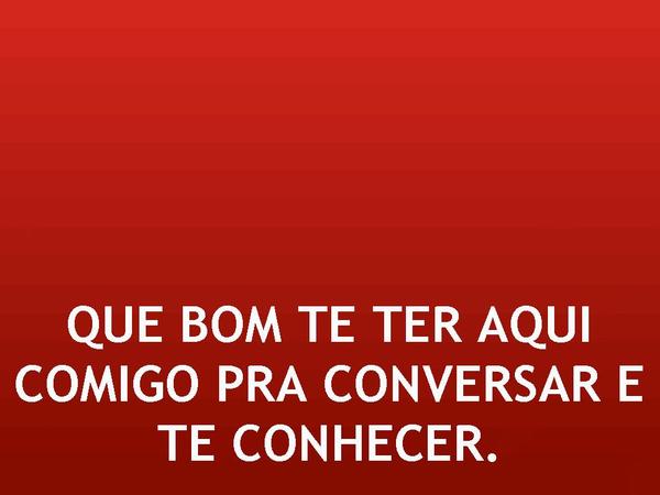 - QUE BOM TE TER AQUI COMIGO PRA CONVERSAR E TE CONHECER.