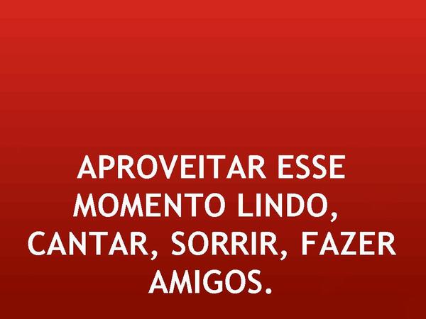- APROVEITAR ESSE MOMENTO LINDO, CANTAR, SORRIR, FAZER AMIGOS.