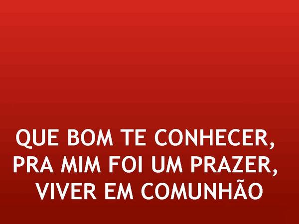- QUE BOM TE CONHECER, PRA MIM FOI UM PRAZER, VIVER EM COMUNHÃO