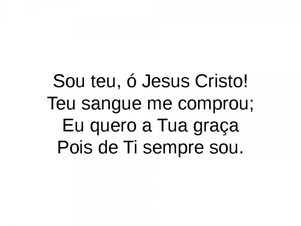- Sou teu, ó Jesus Cristo!Teu sangue me comprou;Eu quero a Tua graçaPois de Ti sempre sou.