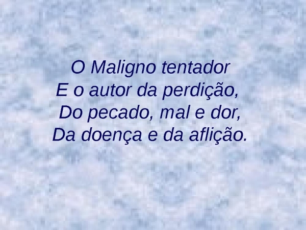 - O Maligno tentador E o autor da perdição, Do pecado, mal e dor, Da doença e da aflição.
