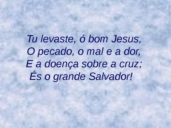 - Tu levaste, ó bom Jesus, O pecado, o mal e a dor, E a doença sobre a cruz; És o grande Salvador!