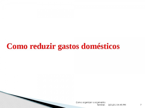 - 04/12/2014 23:49Como organizar o orçamento familiar.7Como reduzir gastos domésticos