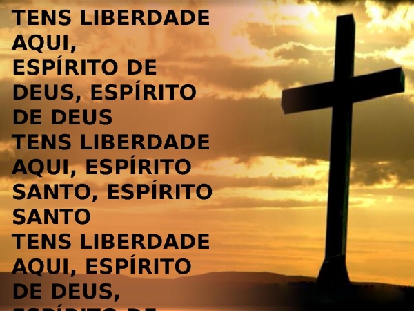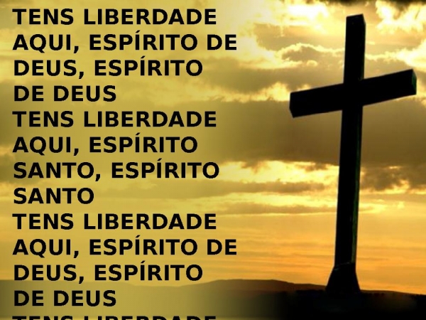 - TENS LIBERDADE AQUI, ESPÍRITO DE DEUS, ESPÍRITO DE DEUS TENS LIBERDADE AQUI, ESPÍRITO SANTO, ESPÍRITO SANTO TENS LIBERDADE AQUI, ESPÍRITO DE DEUS, ESPÍRITO DE DEUS TENS LIBERDADE AQUI, ESPÍRITO SANTO, ESPÍRITO SANTO