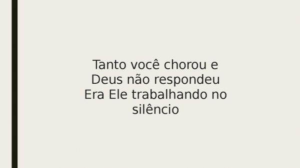 - Tanto você chorou e Deus não respondeuEra Ele trabalhando no silêncio