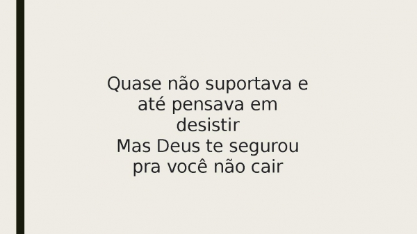 - Quase não suportava e até pensava em desistirMas Deus te segurou pra você não cair