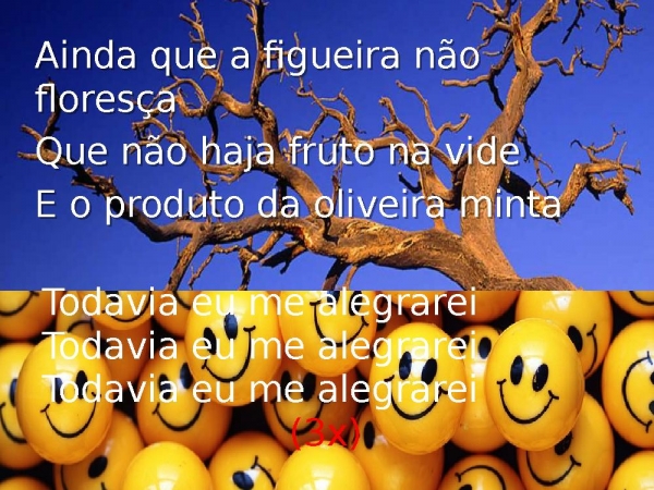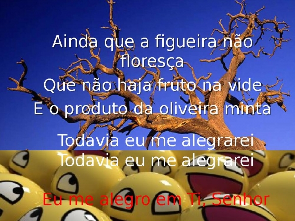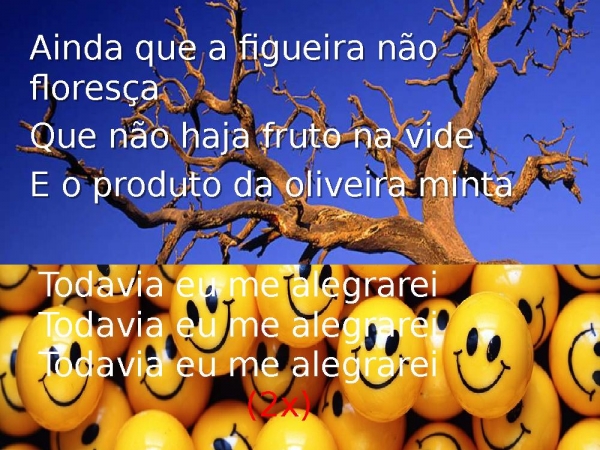 - Ainda que a figueira não floresçaQue não haja fruto na videE o produto da oliveira mintaTodavia eu me alegrareiTodavia eu me alegrareiEu me alegro em Ti, Senhor