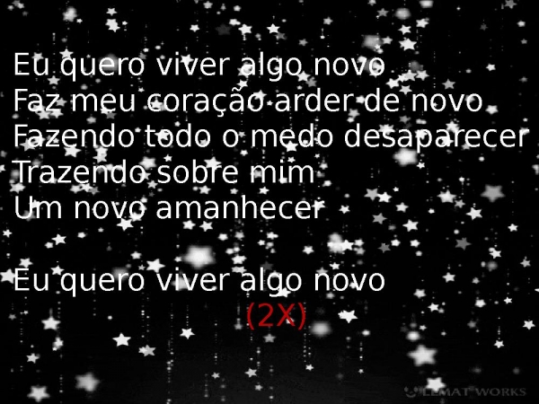 - Eu quero viver algo novoFaz meu coração arder de novo Fazendo todo o medo desaparecer Trazendo sobre mim Um novo amanhecer Eu quero viver algo novo(2X)