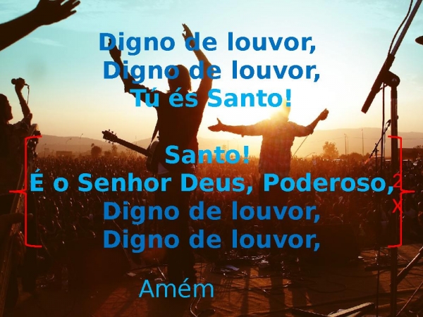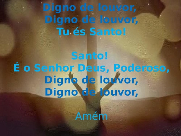 - Digno de louvor, Digno de louvor,Tú és Santo!Santo! É o Senhor Deus, Poderoso,Digno de louvor,Digno de louvor, 2XAmém