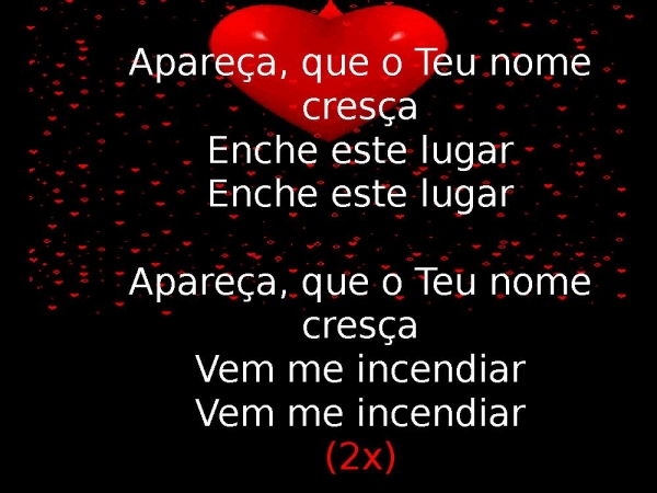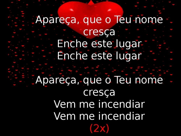 - Apareça, que o Teu nome cresçaEnche este lugarEnche este lugarApareça, que o Teu nome cresçaVem me incendiarVem me incendiar(2x)