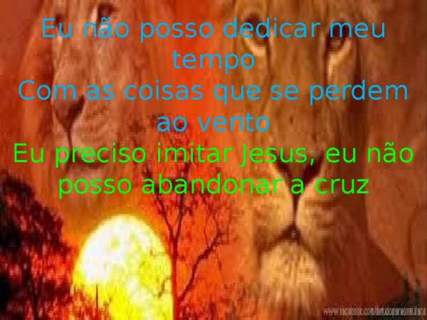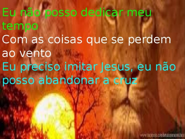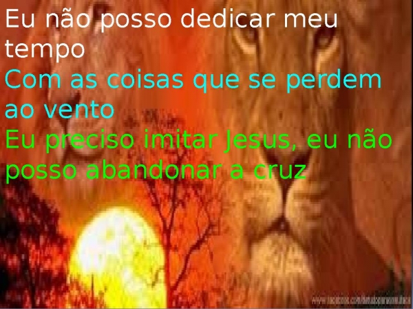 - Eu não posso dedicar meu tempoCom as coisas que se perdem ao ventoEu preciso imitar Jesus, eu não posso abandonar a cruz