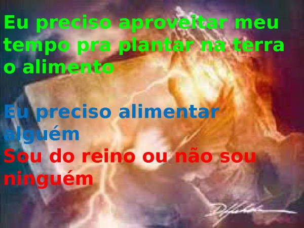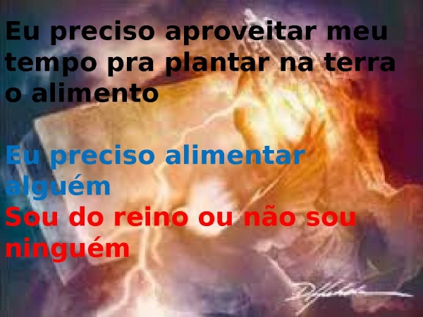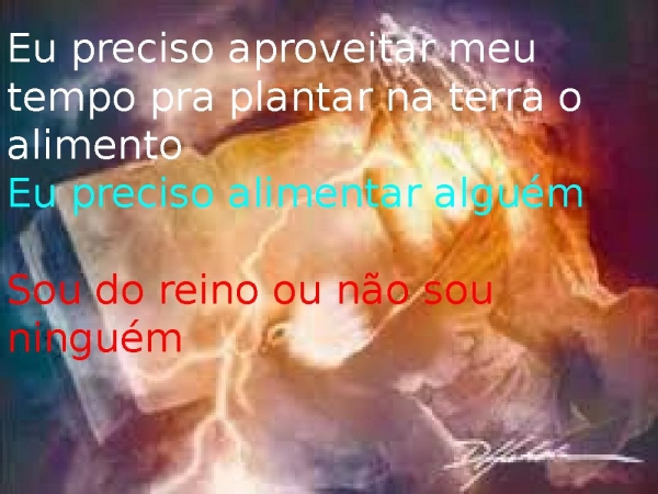 - Eu preciso aproveitar meu tempo pra plantar na terra o alimentoEu preciso alimentar alguémSou do reino ou não sou ninguém
