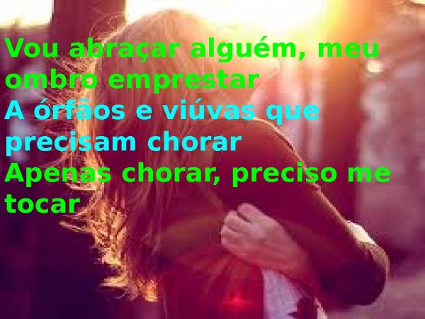 - Vou abraçar alguém, meu ombro emprestarA órfãos e viúvas que precisam chorarApenas chorar, preciso me tocar