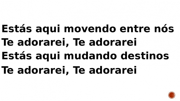 - Estás aqui movendo entre nós Te adorarei, Te adorarei Estás aqui mudando destinos Te adorarei, Te adorarei