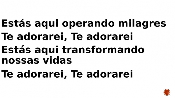- Estás aqui operando milagres Te adorarei, Te adorarei Estás aqui transformando nossas vidas Te adorarei, Te adorarei