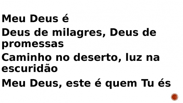 - Meu Deus é Deus de milagres, Deus de promessas Caminho no deserto, luz na escuridão Meu Deus, este é quem Tu és