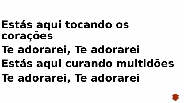 - Estás aqui tocando os corações Te adorarei, Te adorarei Estás aqui curando multidões Te adorarei, Te adorarei