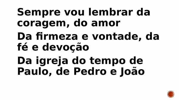 - Sempre vou lembrar da coragem, do amor Da firmeza e vontade, da fé e devoção Da igreja do tempo de Paulo, de Pedro e João