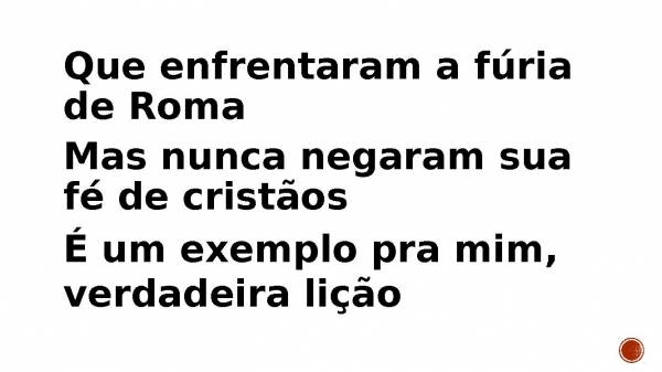 - Que enfrentaram a fúria de Roma Mas nunca negaram sua fé de cristãos É um exemplo pra mim, verdadeira lição