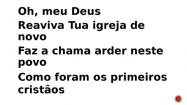 - Oh, meu Deus Reaviva Tua igreja de novo Faz a chama arder neste povo Como foram os primeiros cristãos