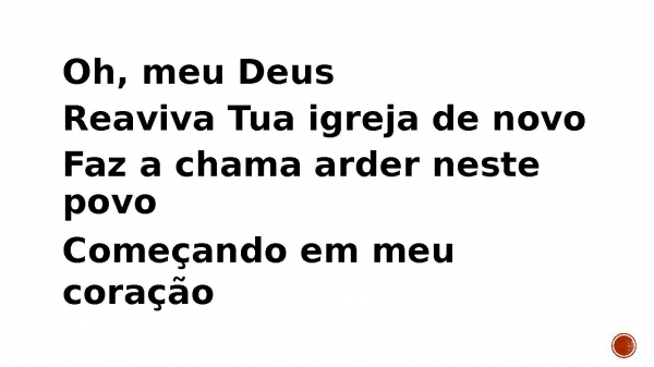 - Oh, meu Deus Reaviva Tua igreja de novo Faz a chama arder neste povo Começando em meu coração