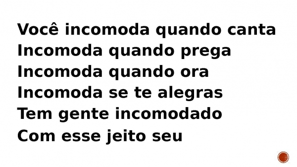 - Você incomoda quando canta Incomoda quando prega Incomoda quando ora Incomoda se te alegras Tem gente incomodado Com esse jeito seu