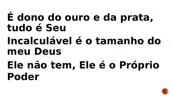 - É dono do ouro e da prata, tudo é Seu Incalculável é o tamanho do meu Deus Ele não tem, Ele é o Próprio Poder