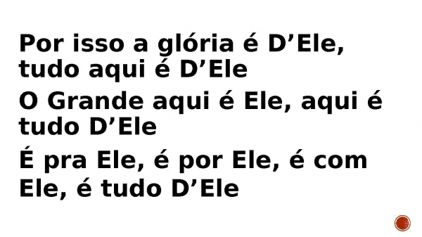 - Por isso a glória é D’Ele, tudo aqui é D’Ele O Grande aqui é Ele, aqui é tudo D’Ele É pra Ele, é por Ele, é com Ele, é tudo D’Ele