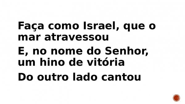- Faça como Israel, que o mar atravessou E, no nome do Senhor, um hino de vitória Do outro lado cantou