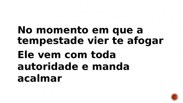 - No momento em que a tempestade vier te afogar Ele vem com toda autoridade e manda acalmar