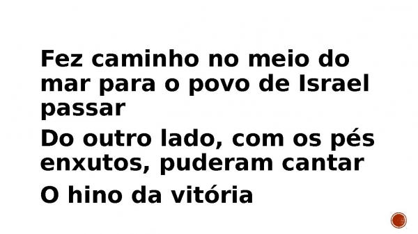- Fez caminho no meio do mar para o povo de Israel passar Do outro lado, com os pés enxutos, puderam cantar O hino da vitória
