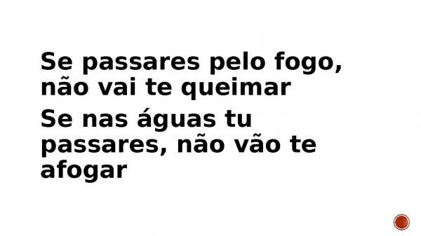 - Se passares pelo fogo, não vai te queimar Se nas águas tu passares, não vão te afogar