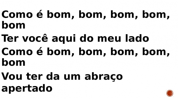 - Como é bom, bom, bom, bom, bom Ter você aqui do meu lado Como é bom, bom, bom, bom, bom Vou ter da um abraço apertado