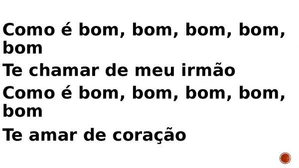 - Como é bom, bom, bom, bom, bom Te chamar de meu irmão Como é bom, bom, bom, bom, bom Te amar de coração