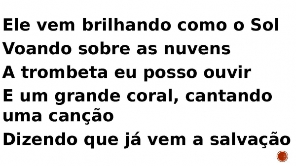 - Ele vem brilhando como o SolVoando sobre as nuvens A trombeta eu posso ouvir E um grande coral, cantando uma canção Dizendo que já vem a salvação