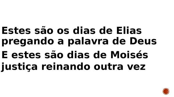 - Estes são os dias de Elias pregando a palavra de Deus E estes são dias de Moisés justiça reinando outra vez