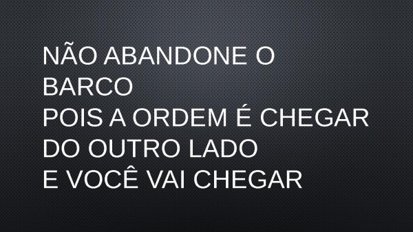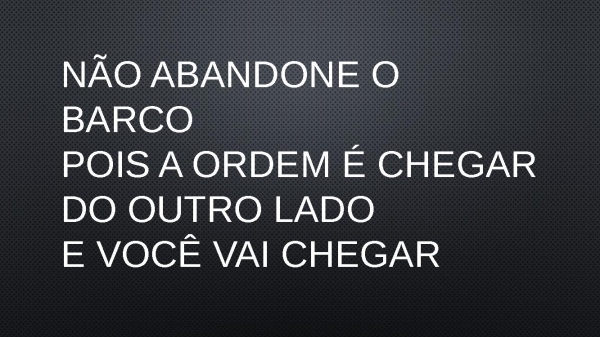 - Não abandone o barcoPois a ordem é chegar do outro ladoE você vai chegar